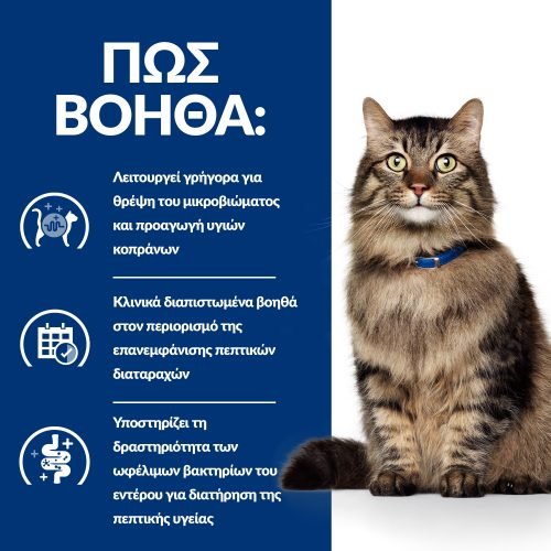 Οι διατροφολόγοι και οι κτηνίατροι της Hill’s σχεδίασαν την τροφή Hill’s PRESCRIPTION DIET Gastrointestinal Biome με ActivBiome+, μία νέα τεχνολογία συστατικών, για την υποστήριξη των σχηματοποιημένων, υγιών κοπράνων και της πεπτικής υγείας.