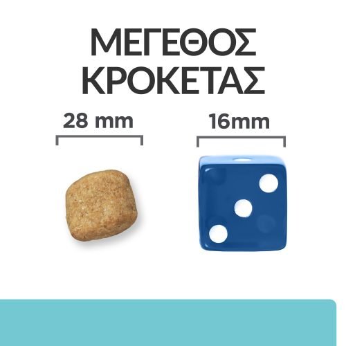 t/d Mini: Μέτρια μεγάλη Παρέχει το κατάλληλο μέγεθος για διαφορετικές φυλές. Η κροκέτα περιβάλλει το δόντι πριν διασπαστεί και οι ίνες καθαρίζουν την επιφάνεια του δοντιού.