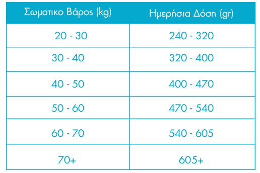 - Έως 80 gr. γαλοπούλας σε κάθε 100 gr. τροφής.