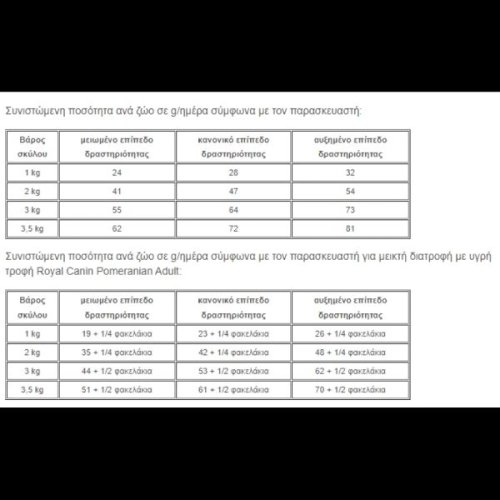 - Ειδική σύνθεση: προσαρμοσμένη βέλτιστα στις διατροφικές ανάγκες της φυλής. Για κάθε μέρα: πλήρης τροφή για την καθημερινή διατροφή, ιδανική για συνδυασμό με υγρή τροφή Royal Canin Pomeranian.